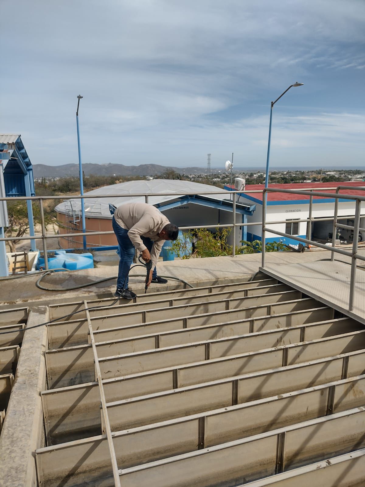 Los Cabos, B.C.S., 13 de marzo de 2026.– La potabilizadora de San Lázaro, ubicada en la colonia Vista Hermosa en San José del Cabo, se encuentra nuevamente en operación luego de que el Organismo Operador Municipal del Sistema de Agua Potable, Alcantarillado y Saneamiento de Los Cabos (OOMSAPAS), a través de la Dirección de Operación y Mantenimiento, realizara trabajos técnicos de mantenimiento preventivo.